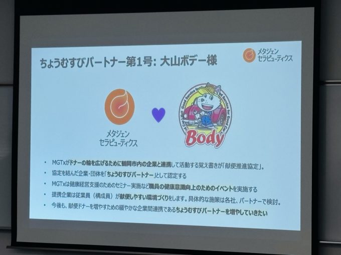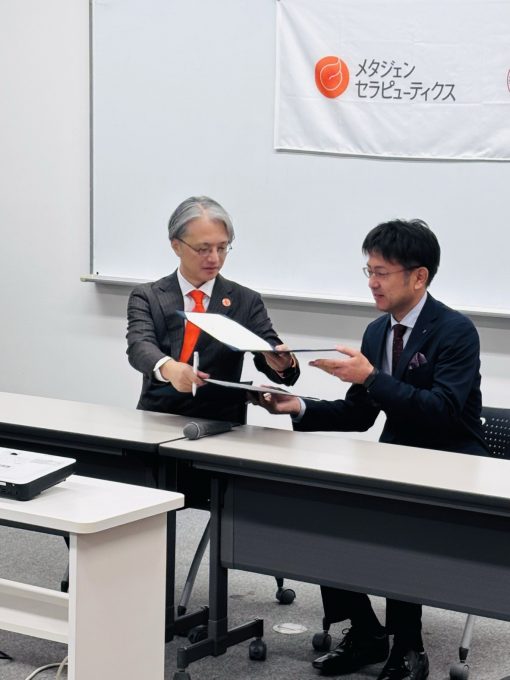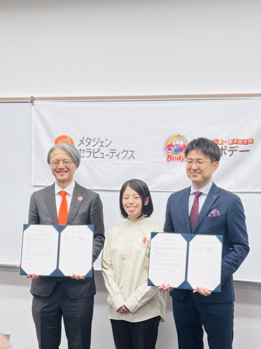 カテゴリー:スタッフブログメタジェンセラピューティクスさんとの「ちょうむすびパートナー」の調印式
