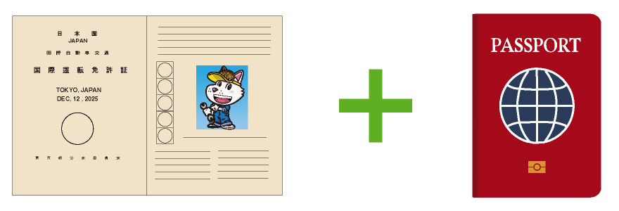 - ジュネーブ条約(1949)加盟国の国際運転免許証とパスポートの同時提示が必要です。
